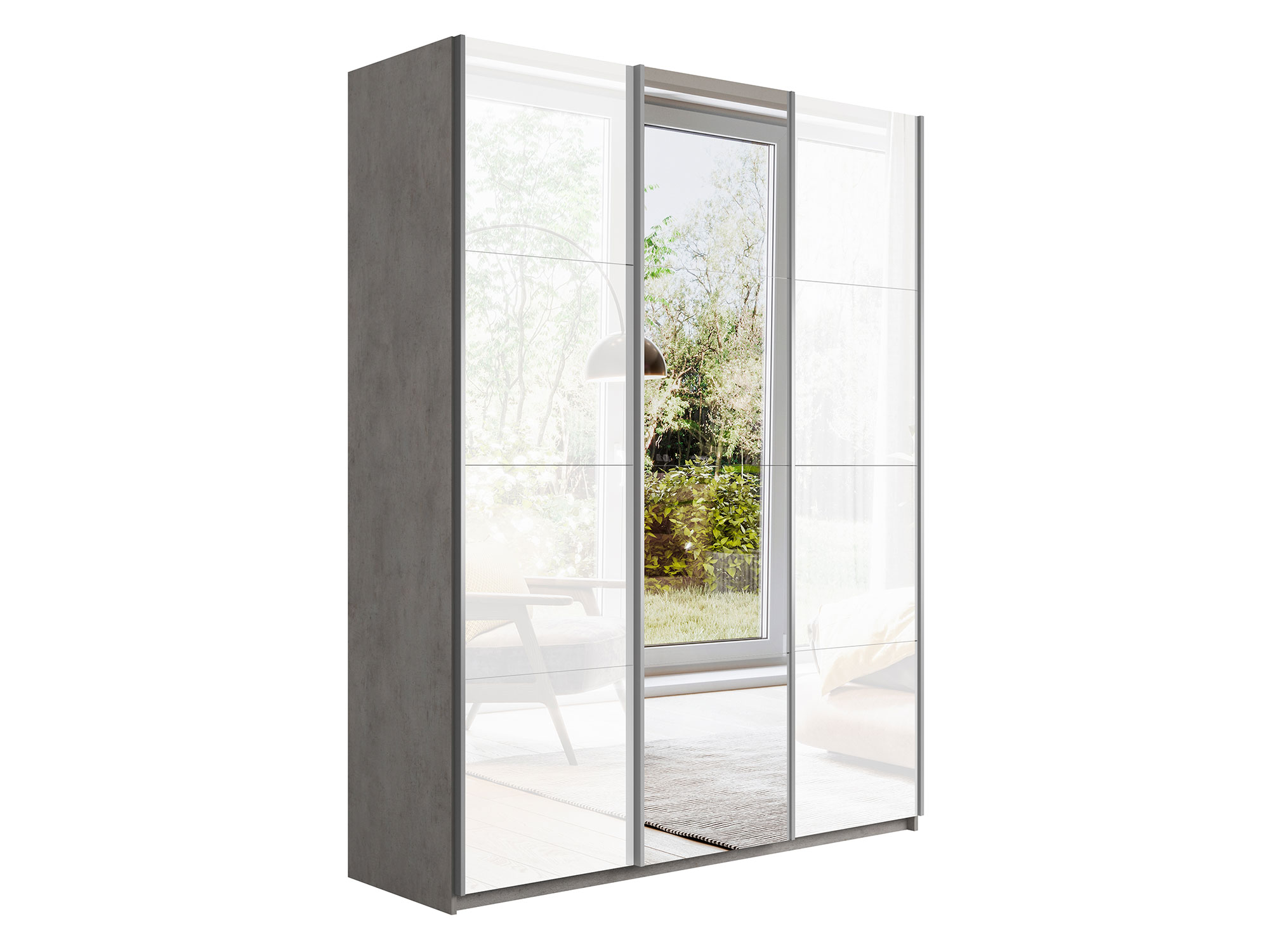 Шкаф-купе Прайм 3-х дверный 1800 два Стекла Белые/Зеркало Бетон