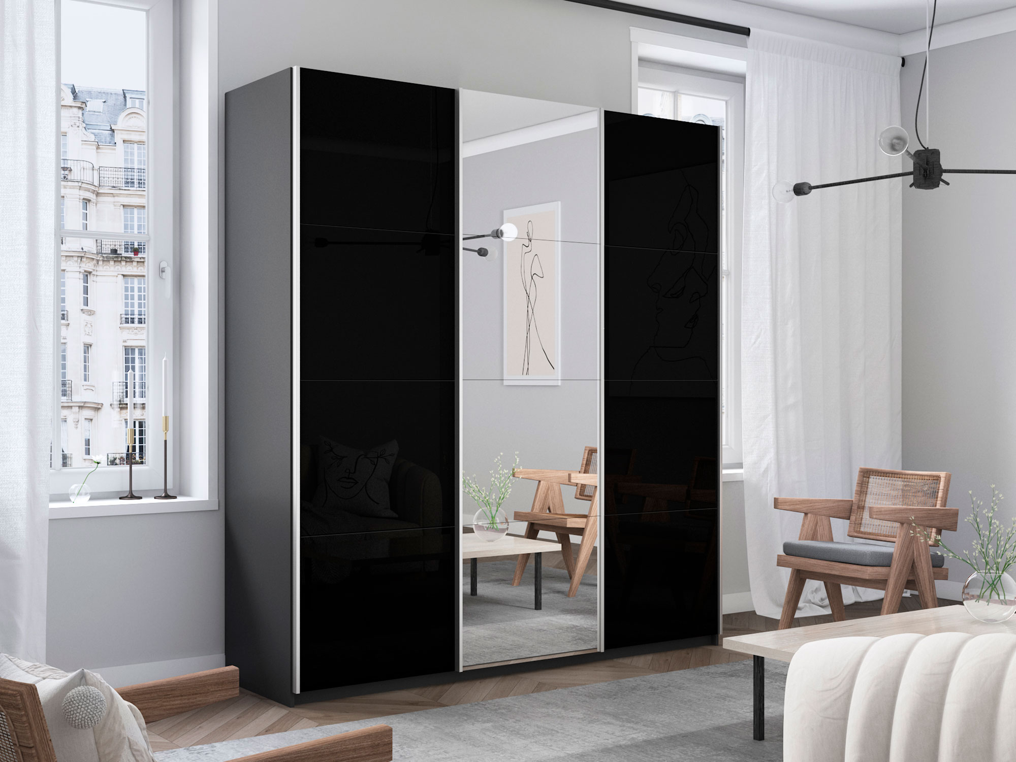 - Шкаф-купе Прайм 3-х дверный 1800 два Стекла Черные/Зеркало Серый Диамант