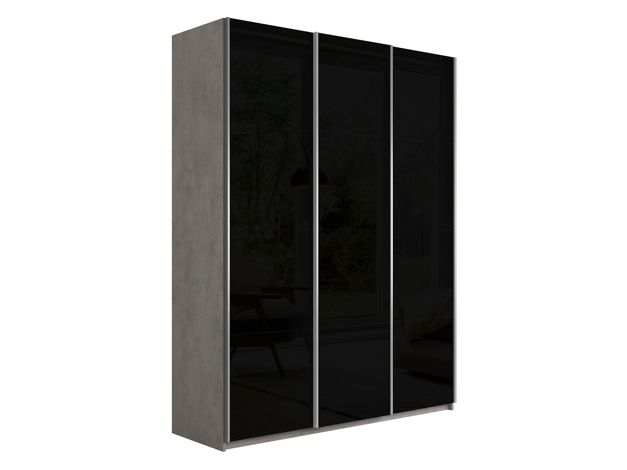 Шкаф-купе Прайм 3-х дверный 1800 три стекла черные Бетон