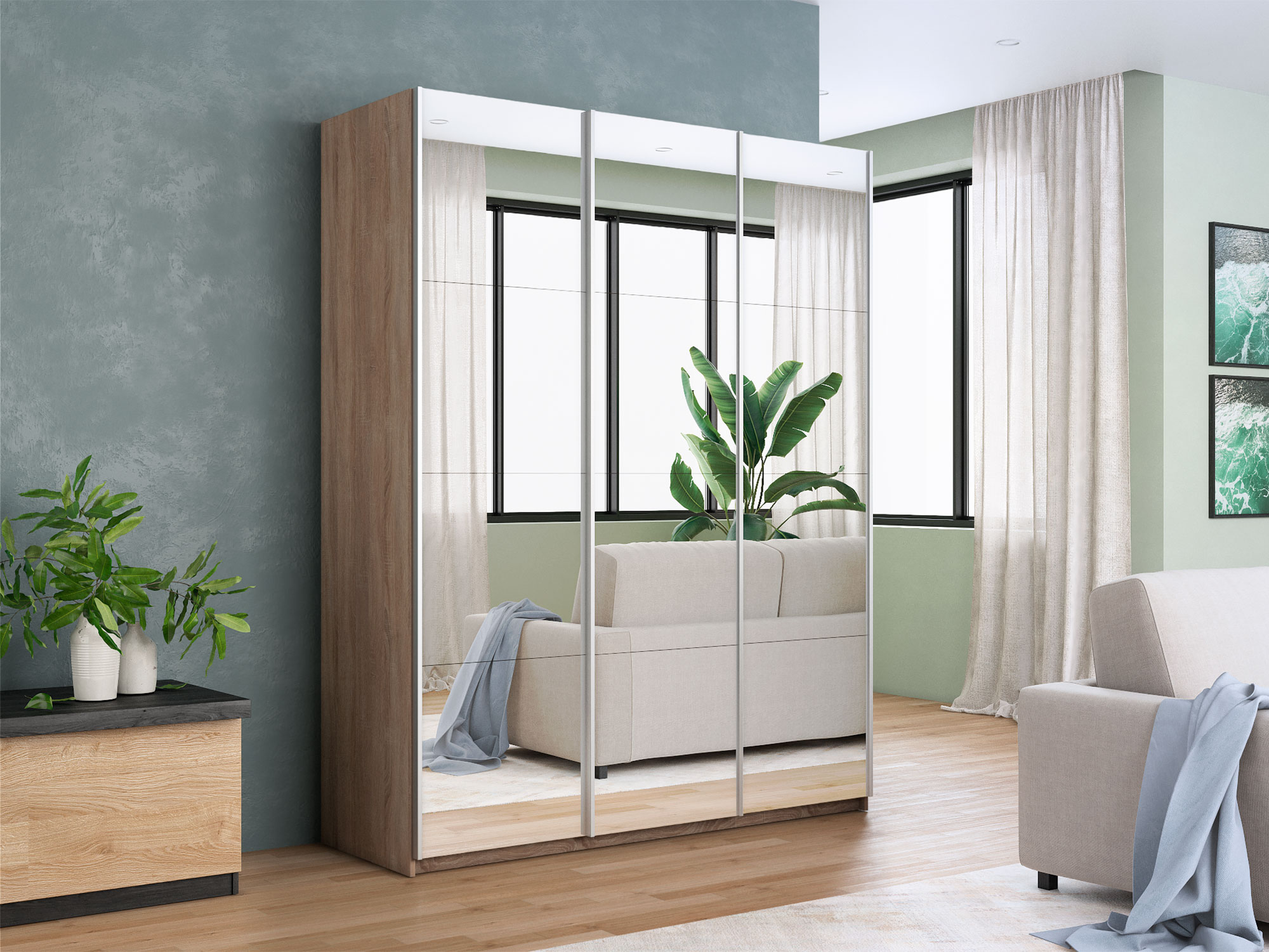 Шкаф-купе Прайм 3-х дверный 1800 три зеркала Сонома