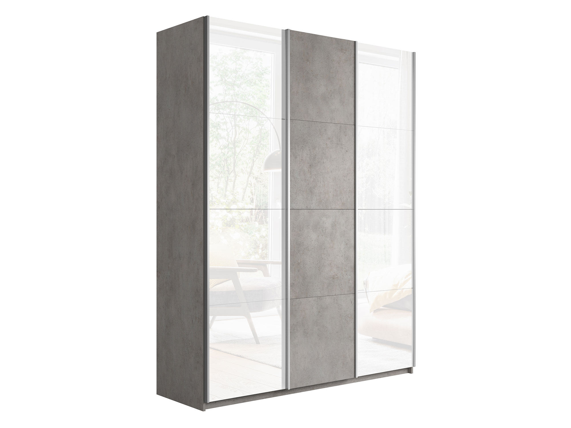 - Шкаф-купе Прайм 3-х дверный 2100 два Стекла Белые/ДСП Бетон