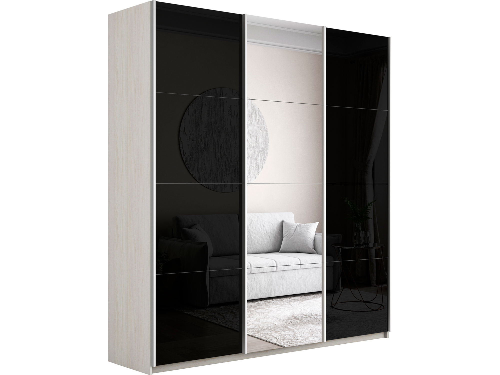 - Шкаф-купе Прайм Широкий 3-х дверный два черных стекла/зеркало Ясень Анкор Светлый
