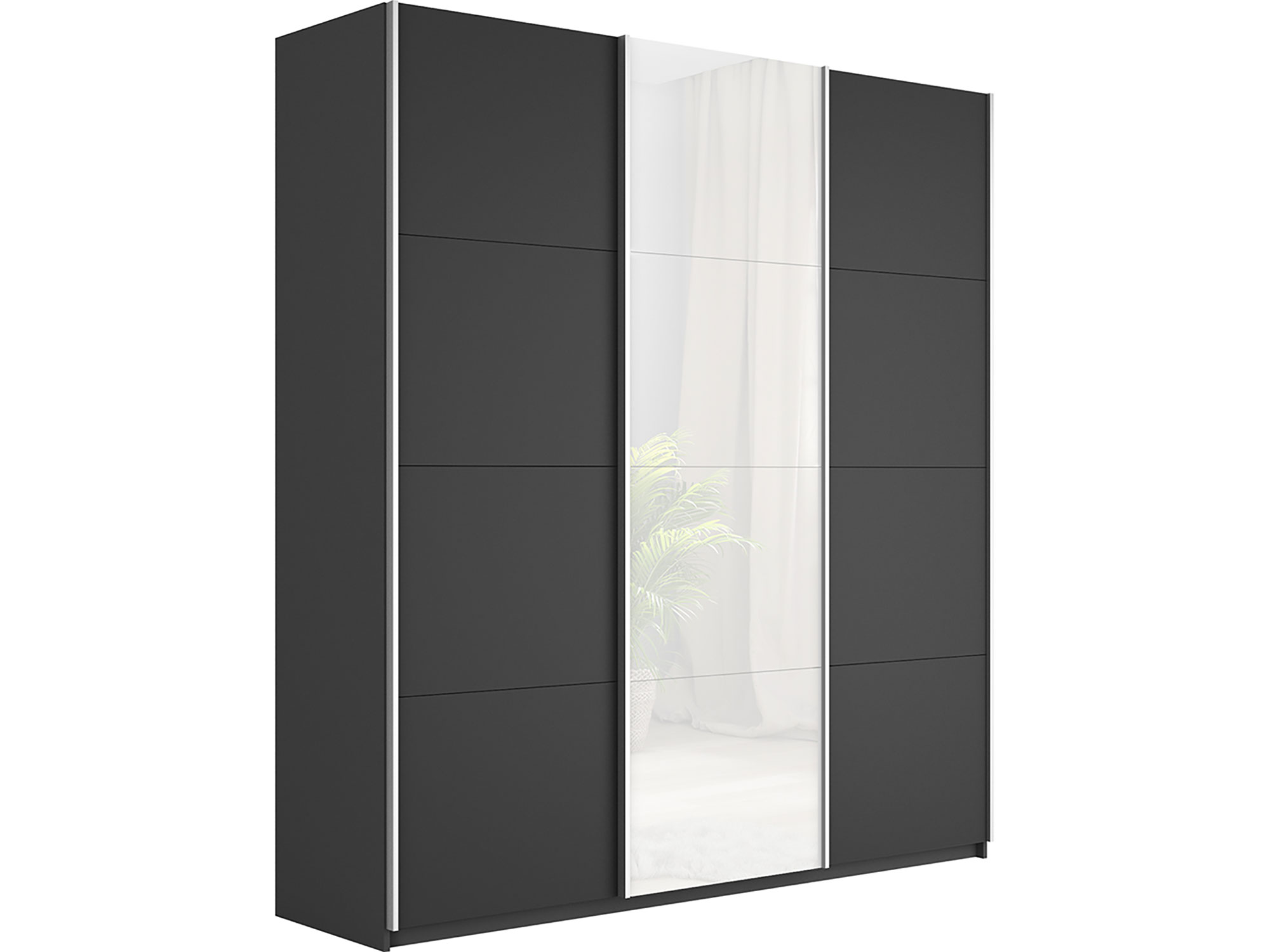 - Шкаф-купе Прайм Широкий 3-х дверный два ДСП/Стекло Белое Серый Диамант