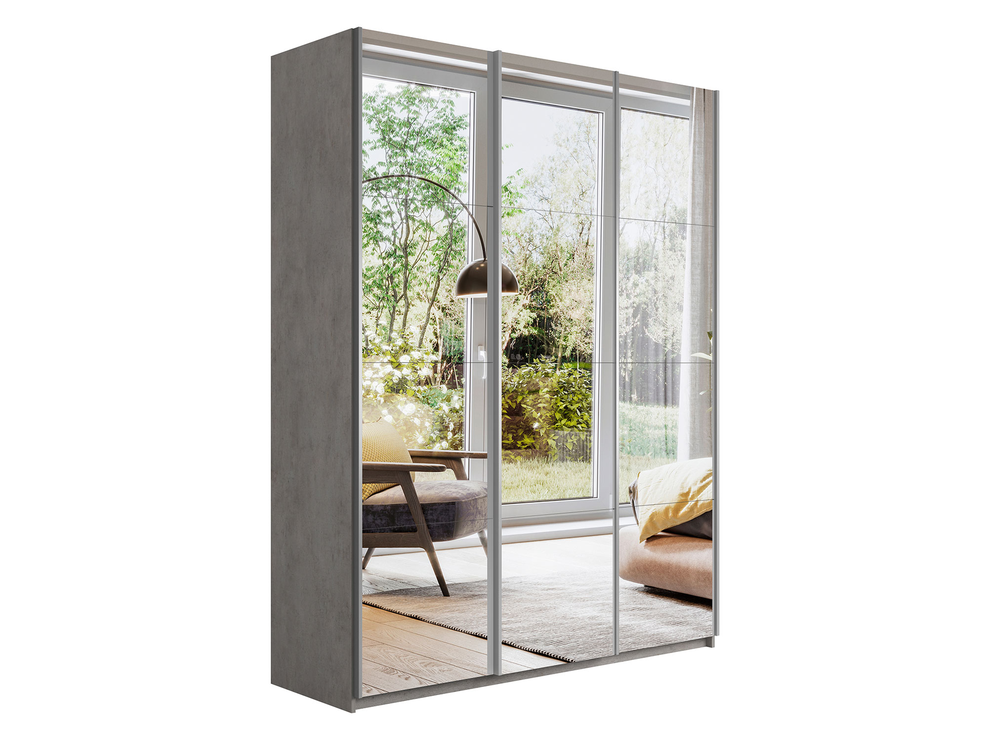 Шкаф-купе Прайм Широкий 3-х дверный три зеркала Бетон
