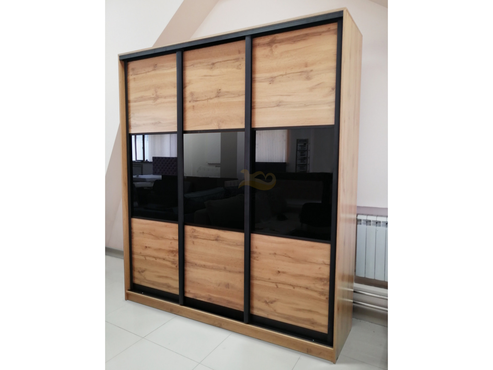 - Шкаф купе трехдверный 3 вставка стекло Дуб вотан 2100 мм