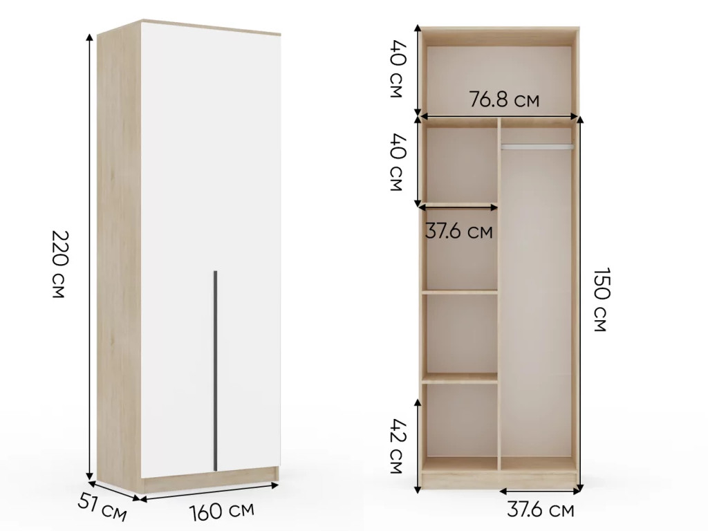 - Шкаф Монблан New распашной 800 2-х дверный Дуб сонома-Белый