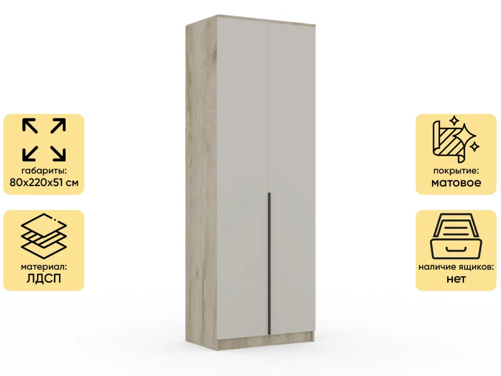- Шкаф Монблан New распашной 800 2-х дверный Кашемир