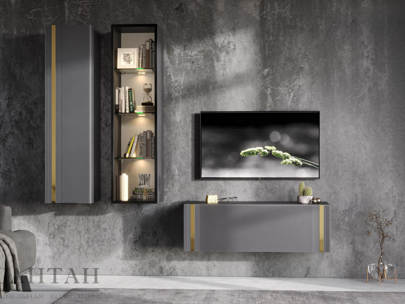 - Фасады из МДФ с оригинальной фрезеровкой покрыты суперматовой пленкой с эффектом Soft Touch в цветах Графит и Milk.