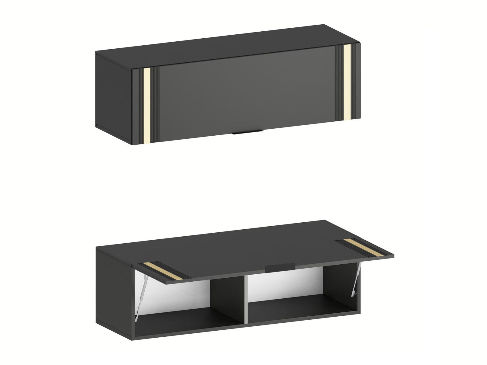 - Фасады из МДФ с оригинальной фрезеровкой покрыты суперматовой пленкой с эффектом Soft Touch в цветах Графит и Milk.