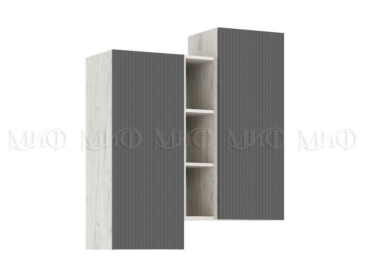 Шкаф подвесной комбинированный Оскар Графит Софт, Дуб Крафт Белый