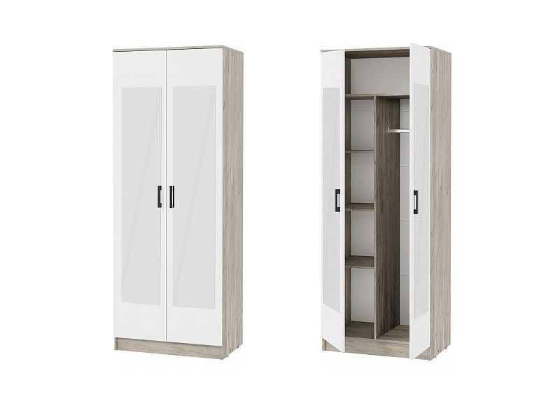 - Шкаф Ронда ШК-20 с двумя зеркалами дуб крафт серый, белый
