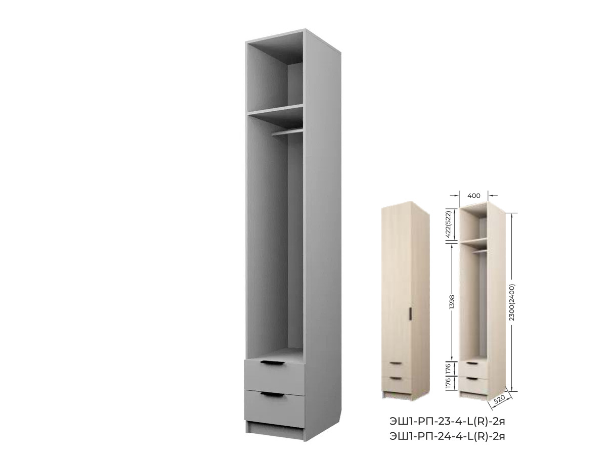 Комплект: ЭШ1-РП-23-4-R-2я,Шкаф с 2 ящиками + ЗС-23-2я,Зеркало для шкафов ЭШ 2300 мм