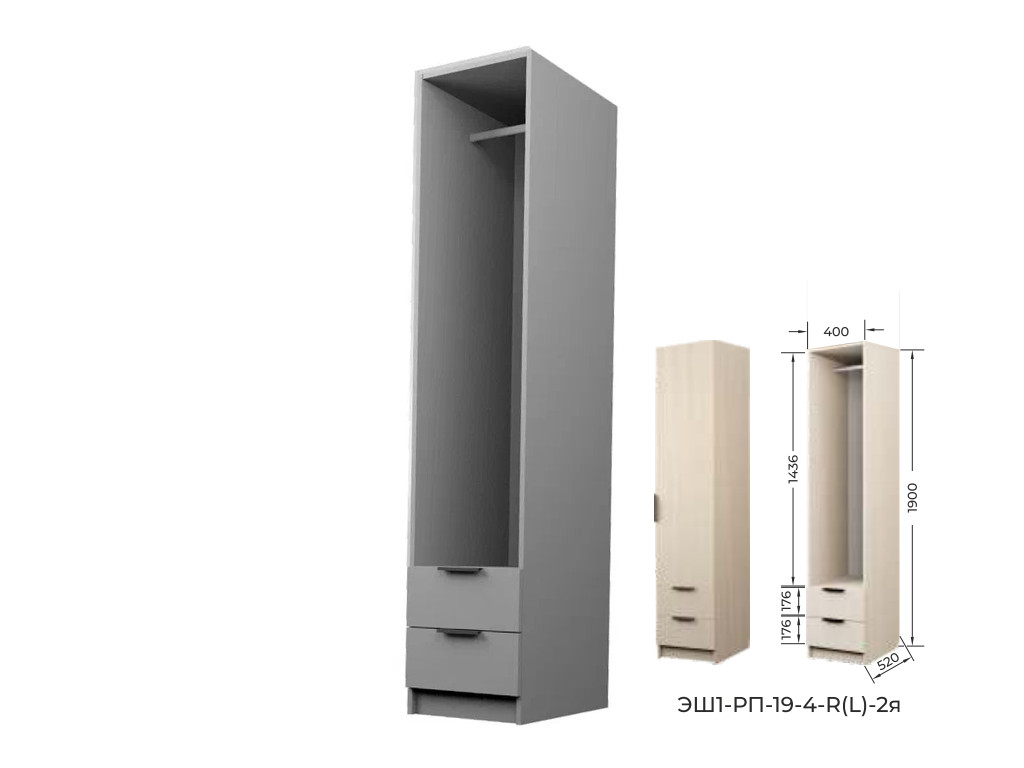 - Шкаф с 2 ящиками со штангой Экон ЭШ1-РП-19-4-R-2я