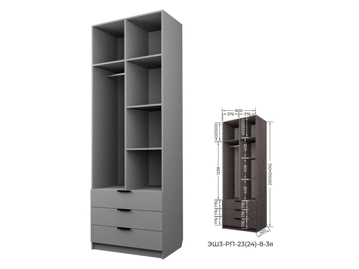 Комплект: ЭШ3-РП-24-8-3я, Шкаф с 3 ящиками+ ЗС-24-3я,Зеркало для шкафов ЭШ 2400 мм