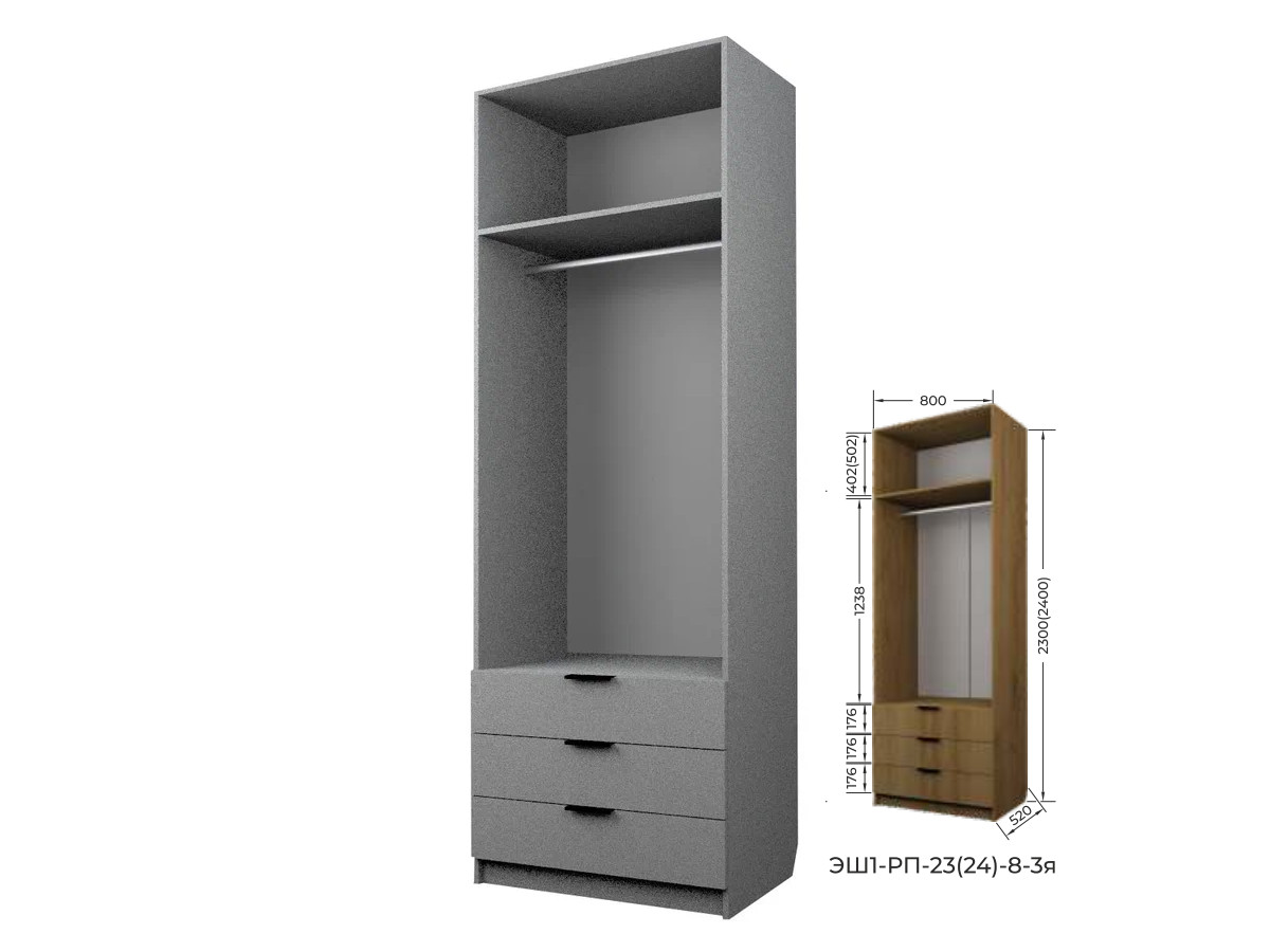 Шкаф с 3 ящиками со штангой Экон ЭШ1-РП-24-8-3я