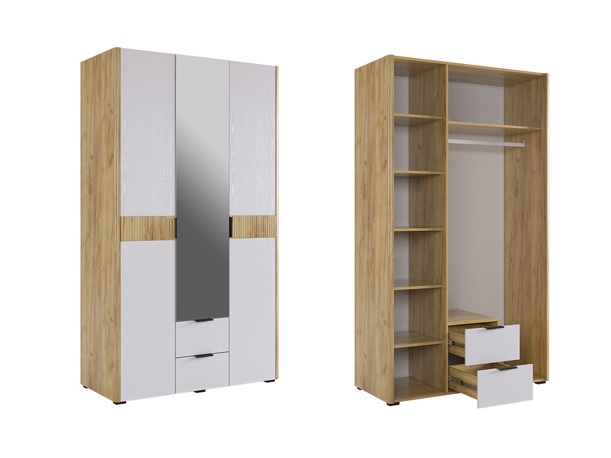 - Шкаф трехдверный с зеркалом Адам дуб крафт золотой/белое дерево