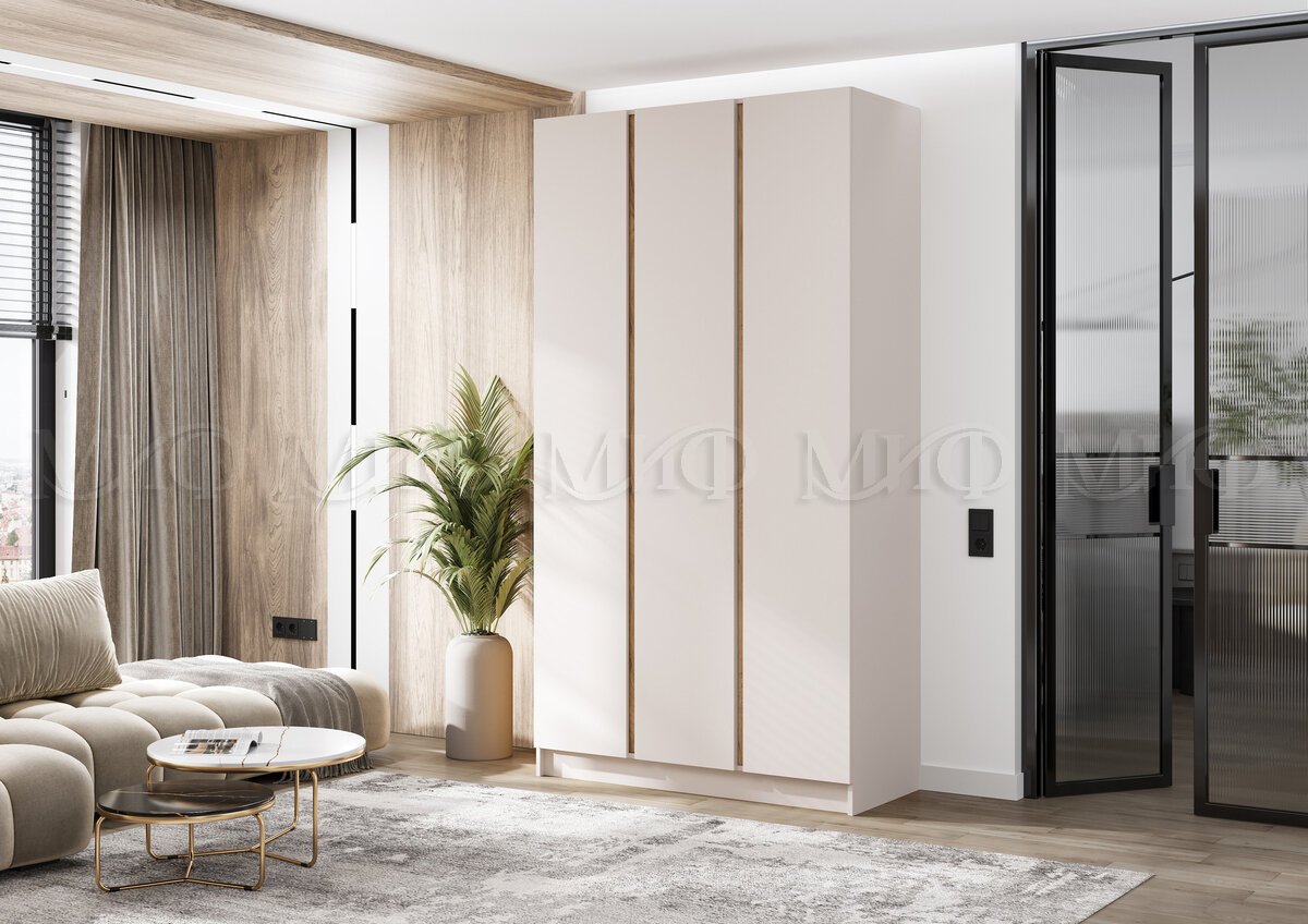 - Шкаф трехстворчатый Келвин (1200) Кашемир-вставка дуб крафт