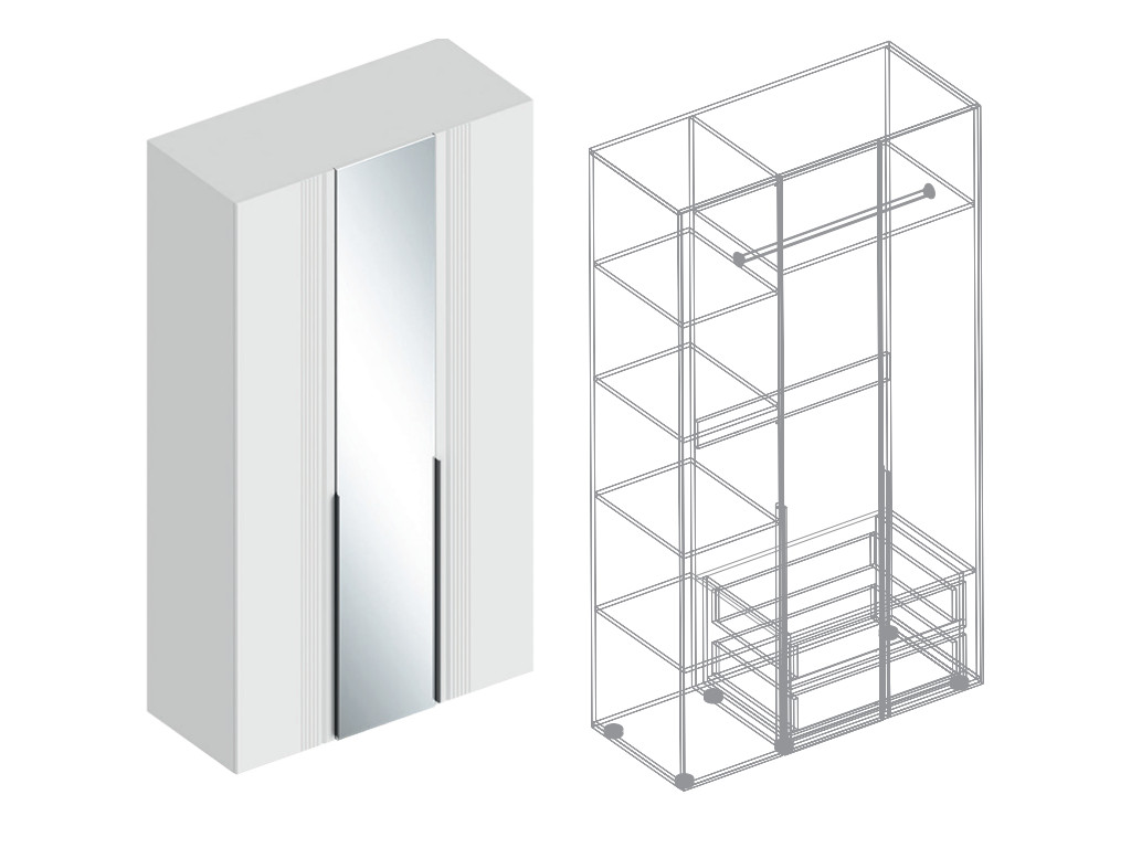 - Шкаф Вита 3-створки с зеркалом белый лофт