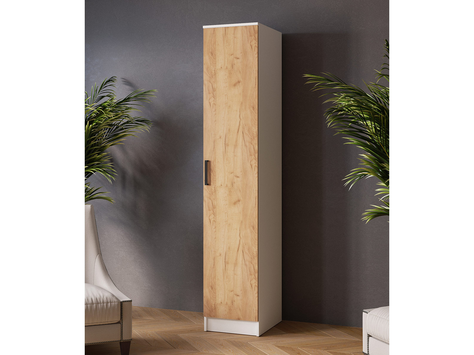 Пенал Ларс имеет два варианта внутреннего наполнения - полки или штанга. Фурнитура: опоры – подпятники пластиковые, черные. Ручки пластиковые, черные.