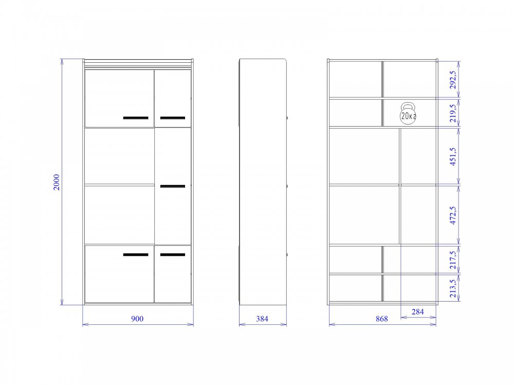 Размер Ш*Г*В: 900*384*2000 мм
