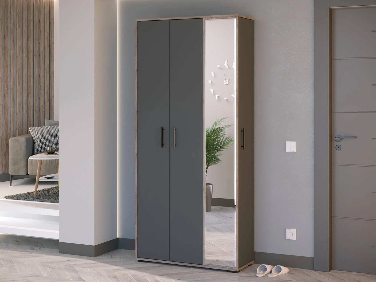 - Прихожая Домино mini 2-3421 Дуб Крафт Табачный=Графит