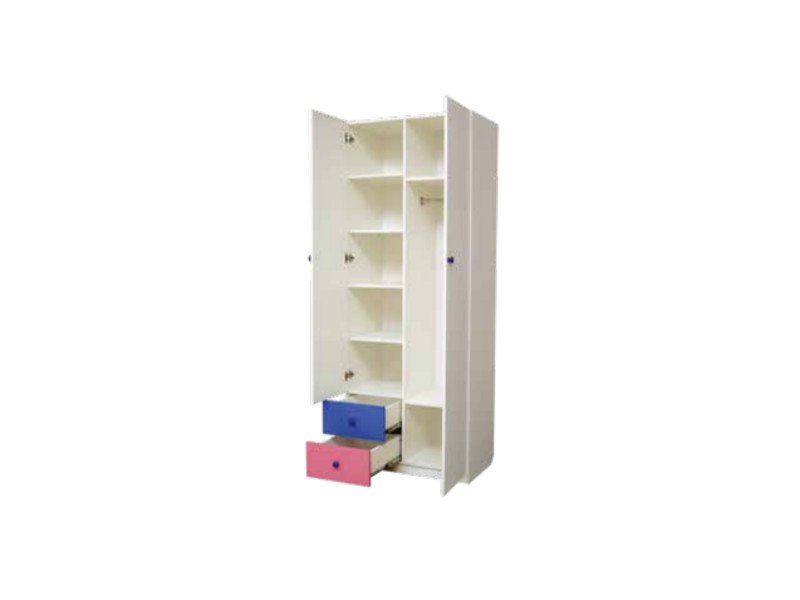 - Шкаф 2-х дверный комбинированный с зеркалом Радуга розовый/cиний