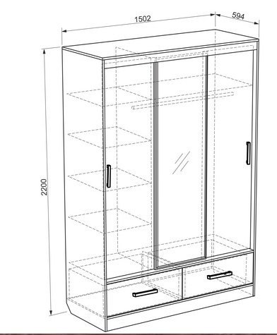 Размер (Ш*Г*В) 1502*594*2200 мм.