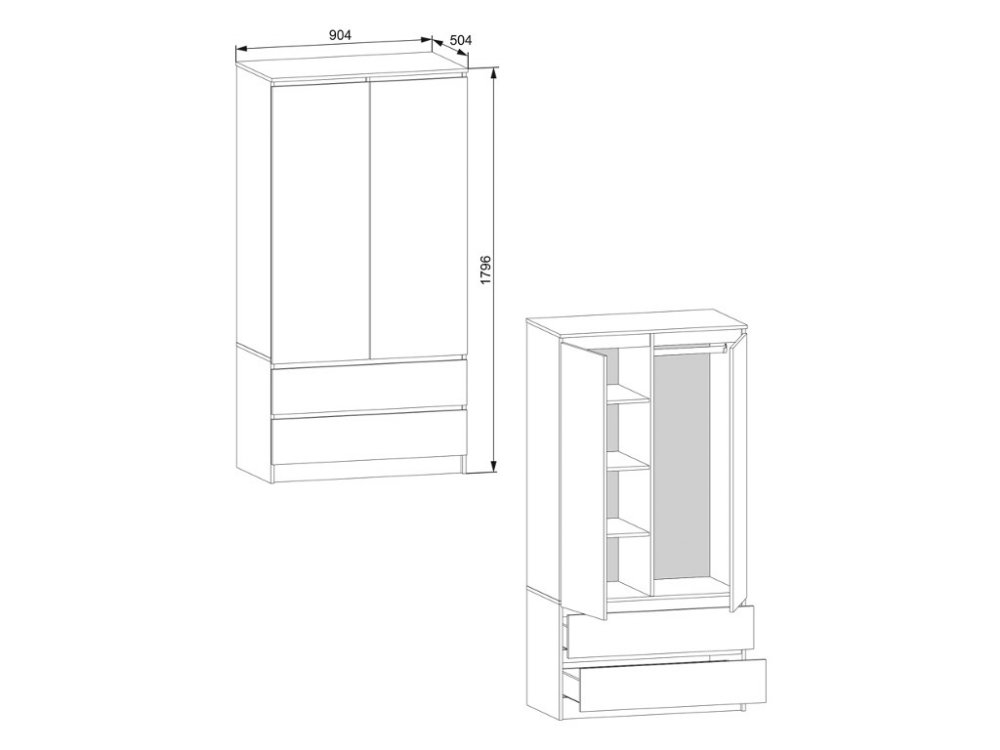 Размеры В*Ш*Г, мм: 1800х904х504