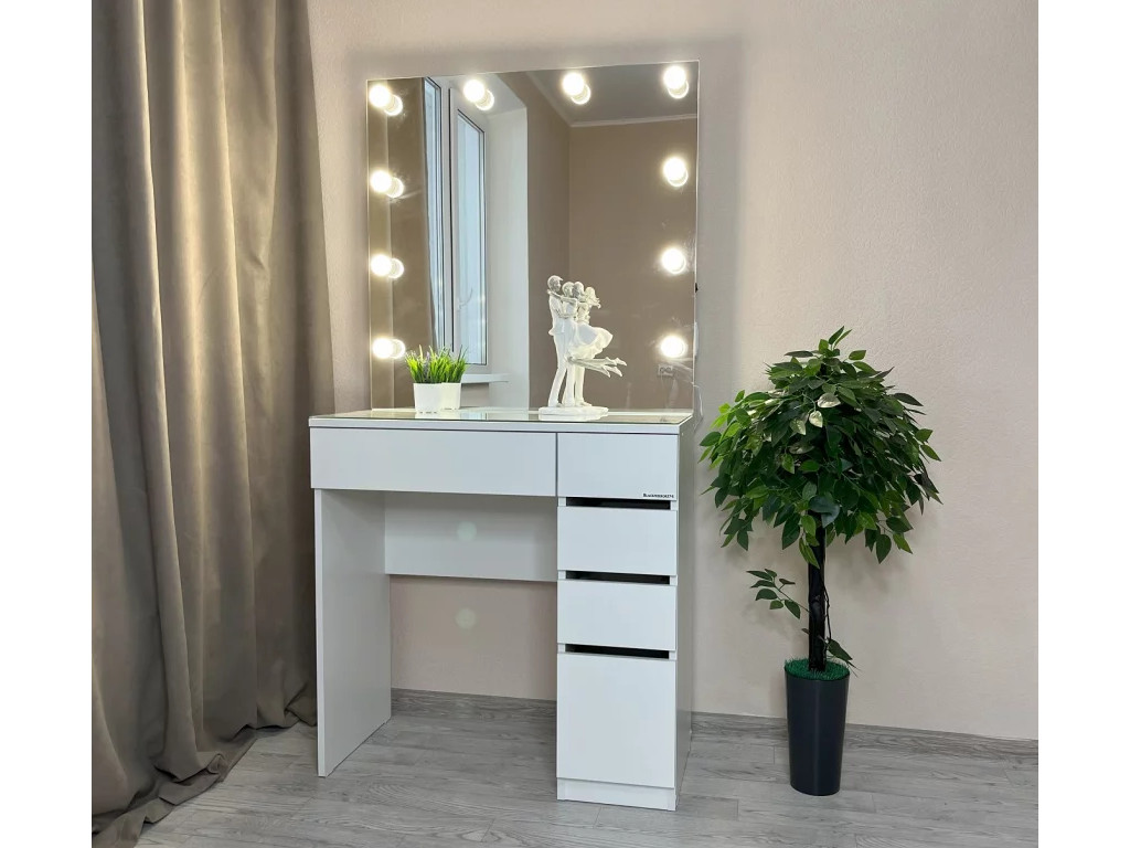 - Туалетный стол с 5 вместительными полновыкатными ящиками без ручек.