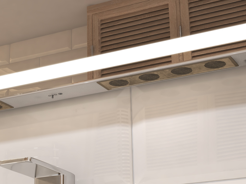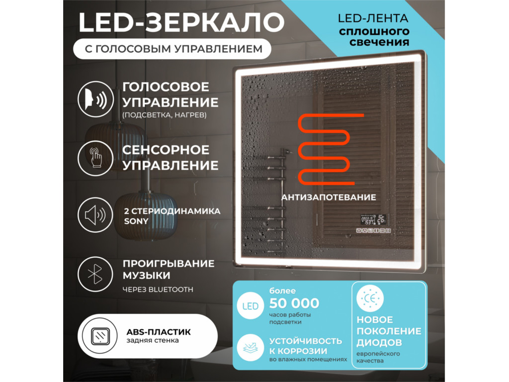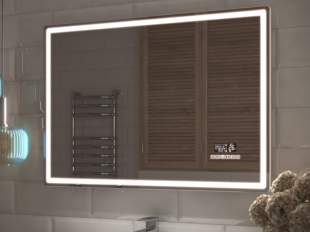 Подсветка фронтальная по периметру, с цветовой температурой 5000К – нейтральный белый, управление подсветкой сенсорное, голосовое